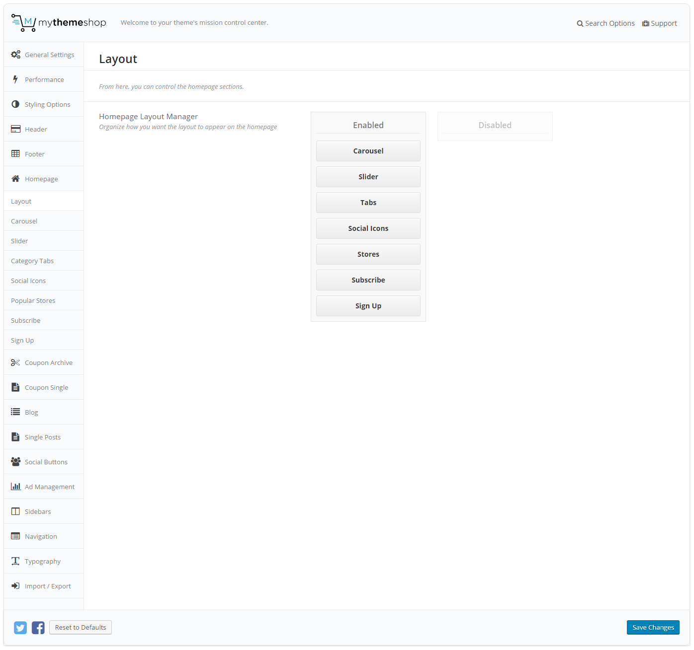 • Social Icons Settings