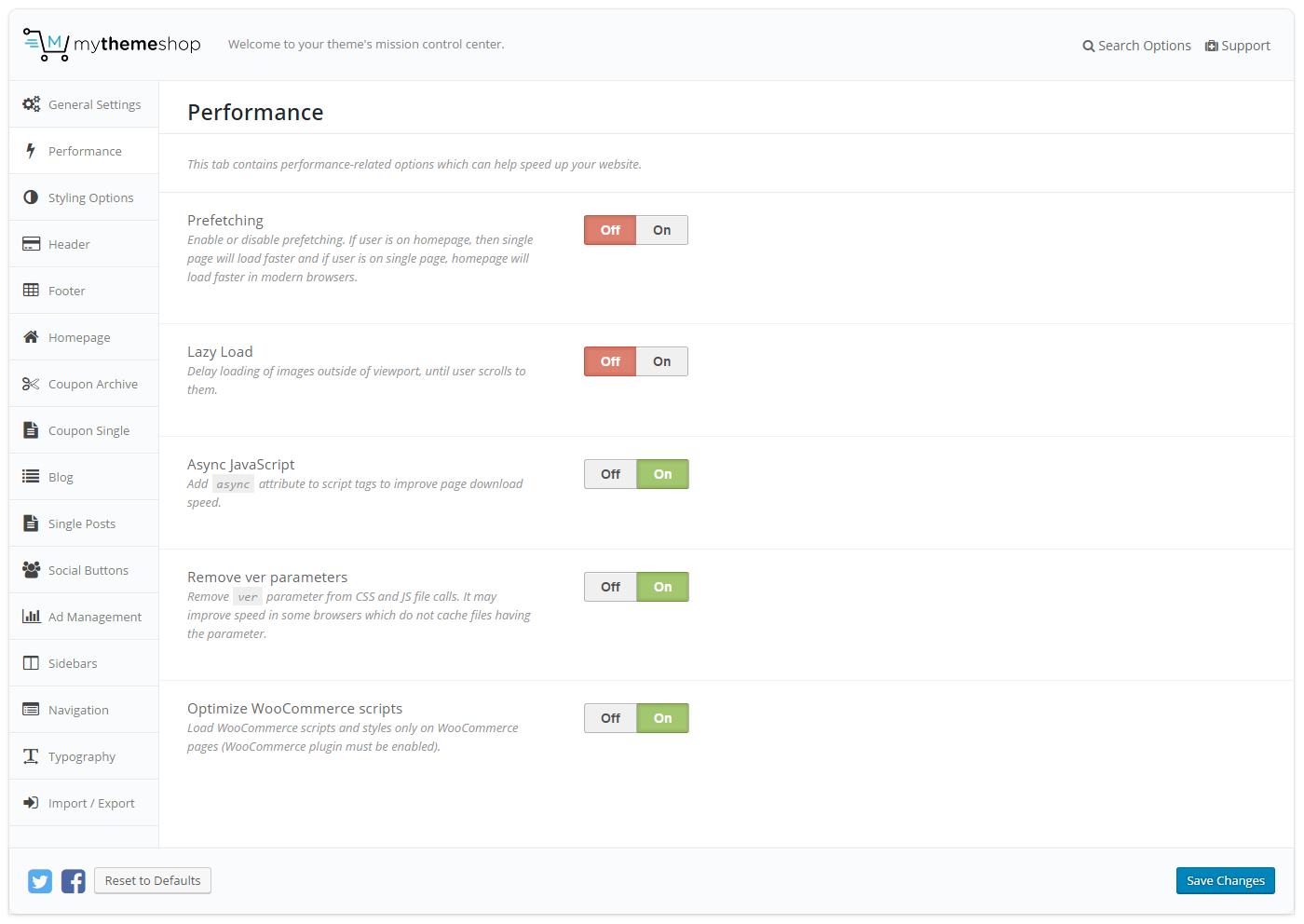 • Social Icons Settings